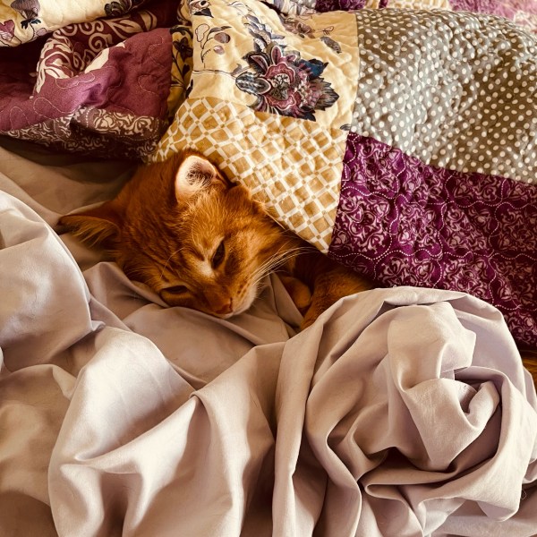 Harry snuggles on his own terms. He’s a sweet and aloof cat. He also likes to fully camouflage as a bump under the blanket.